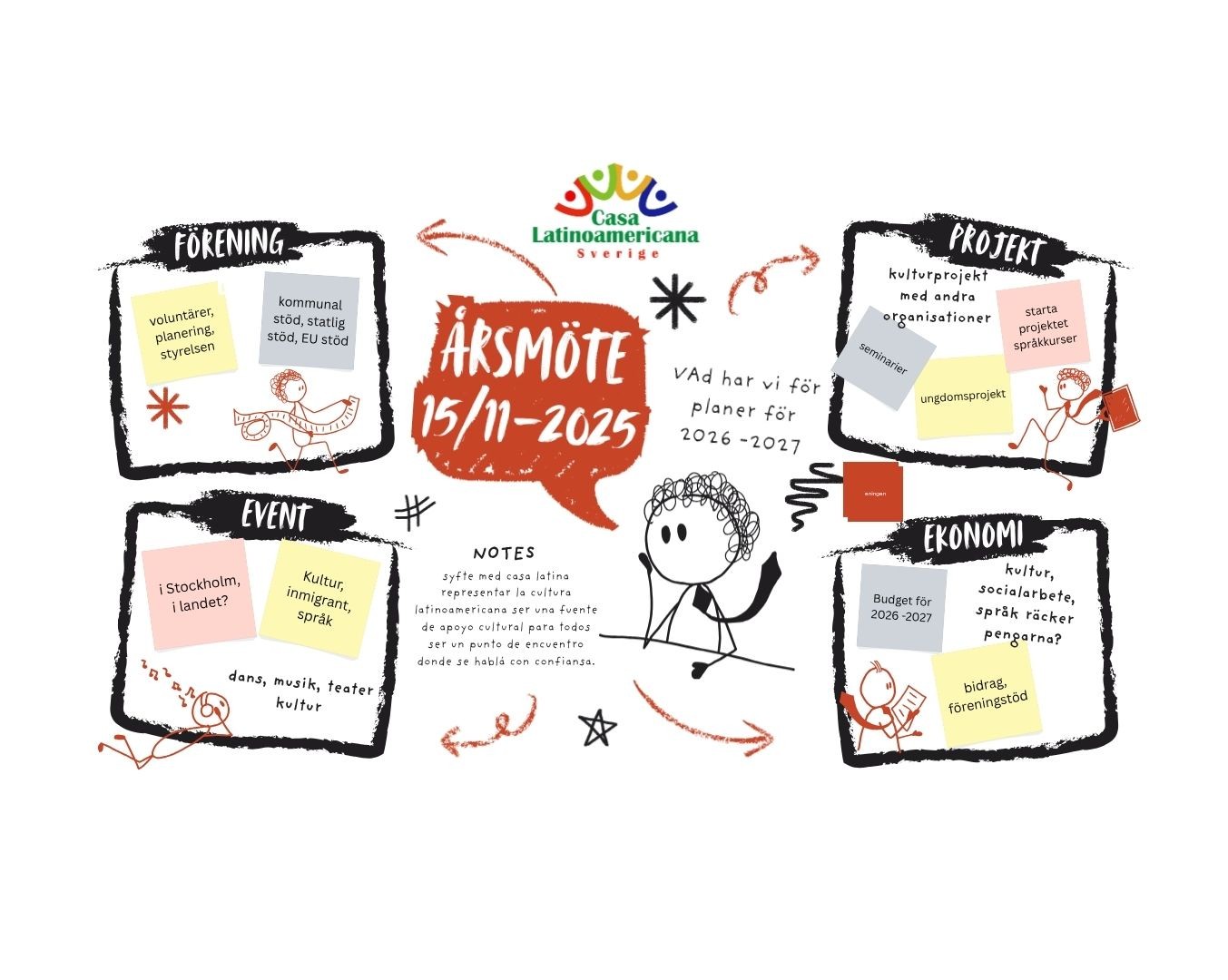 Årsmöte 2025 Casa Latinoamericana Sverige, 15 november kl. 14.00 - 17.00, adress Storgatan 41, 2tr